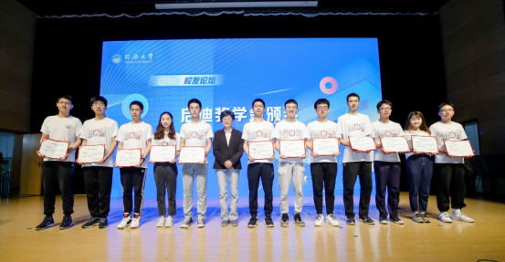获奖员工代表2017级自动化专业本科生李成希发言,他首先表达了对吴启迪教授的敬仰与感谢,并谈到自己对启迪奖学金背后精神的理解,最后号召全体同济学子秉持创新精神,提高实践能力,同舟共济,自强不息,将论文写在祖国大地上。