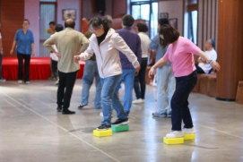 在一圈到底、水到渠成、同心鼓、毛毛虫、多人多足等游戏活动中,老师们团结协作,尽情投入,体会游戏带来的轻松快乐。