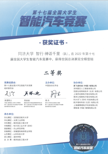 2022年第十七届全国老员工智能汽车竞赛全国总决赛获奖证书