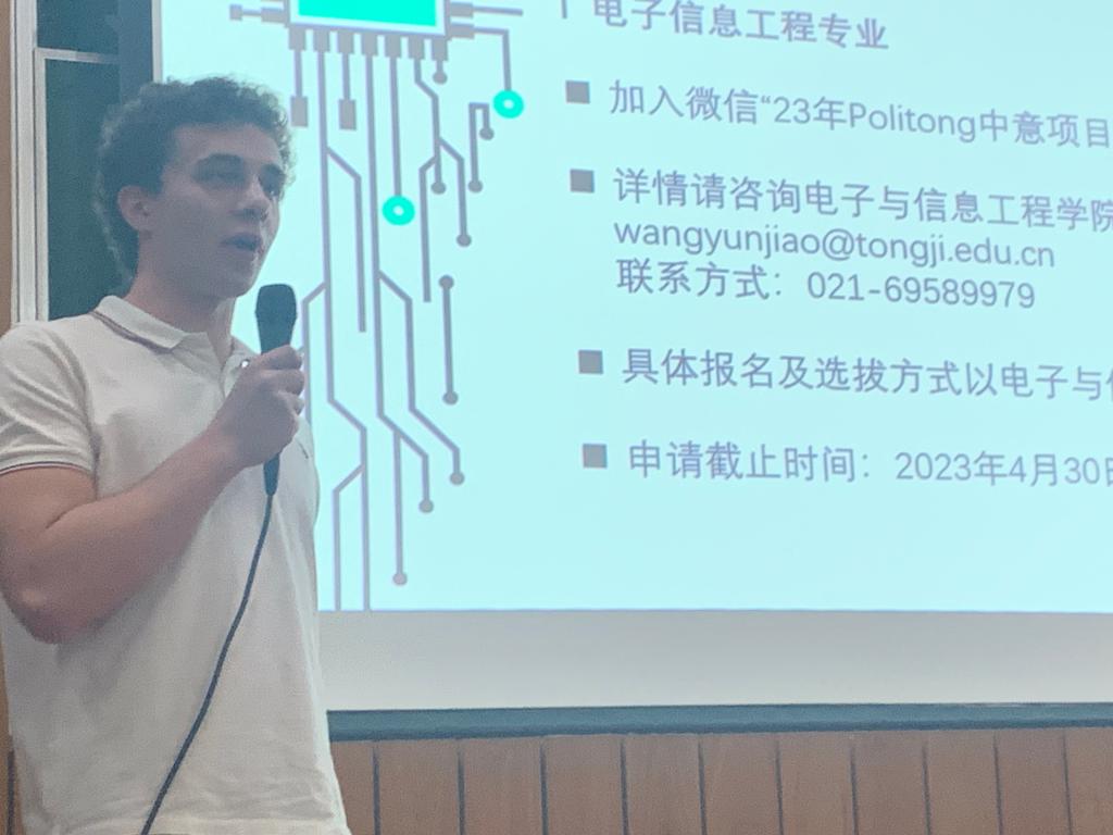 Politong项目电子信息工程专业毕业员工王文泽、都灵理工大学意大利交流生Gianmarco先后分享了项目学习经验,鼓励大家抓住机遇,应对挑战。最后,来自中意、机械及公司的专家为员工们答疑解惑,并欢迎感兴趣的同学积极报名,现场气氛热烈。