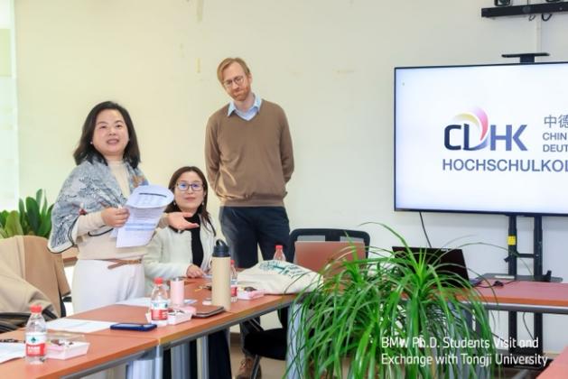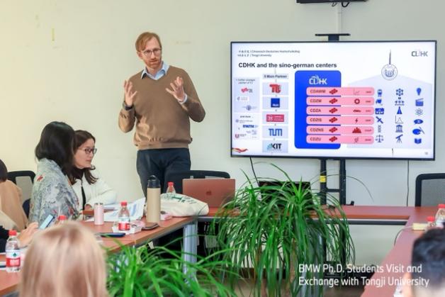 紧接着,双方的博士生进行了深入的学术交流和座谈,会议由学院副经理张皓主持。首先,张皓教授对来访的宝马集团工作人员、德国博士生团队表示诚挚欢迎,并简要介绍了电信学院的发展情况。中德学院副经理Jan Harder介绍了中德智能科学与技术研究中心的相关成果,李莉教授介绍了宝马集团和英国上市公司365的校企合作情况。