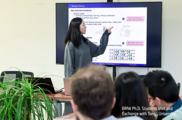 随后,宝马集团Jiaje Fan、Simon Schramm等七位德国博士生就汽车外观设计、电池充放电预测、自动泊车等自动驾驶以及当前汽车前沿技术发展分别作了相关学术报告,公司博士研究生李欣然基于研究课题作题为“基于深度学习的自动驾驶车辆轨迹预测工作”的学术报告。