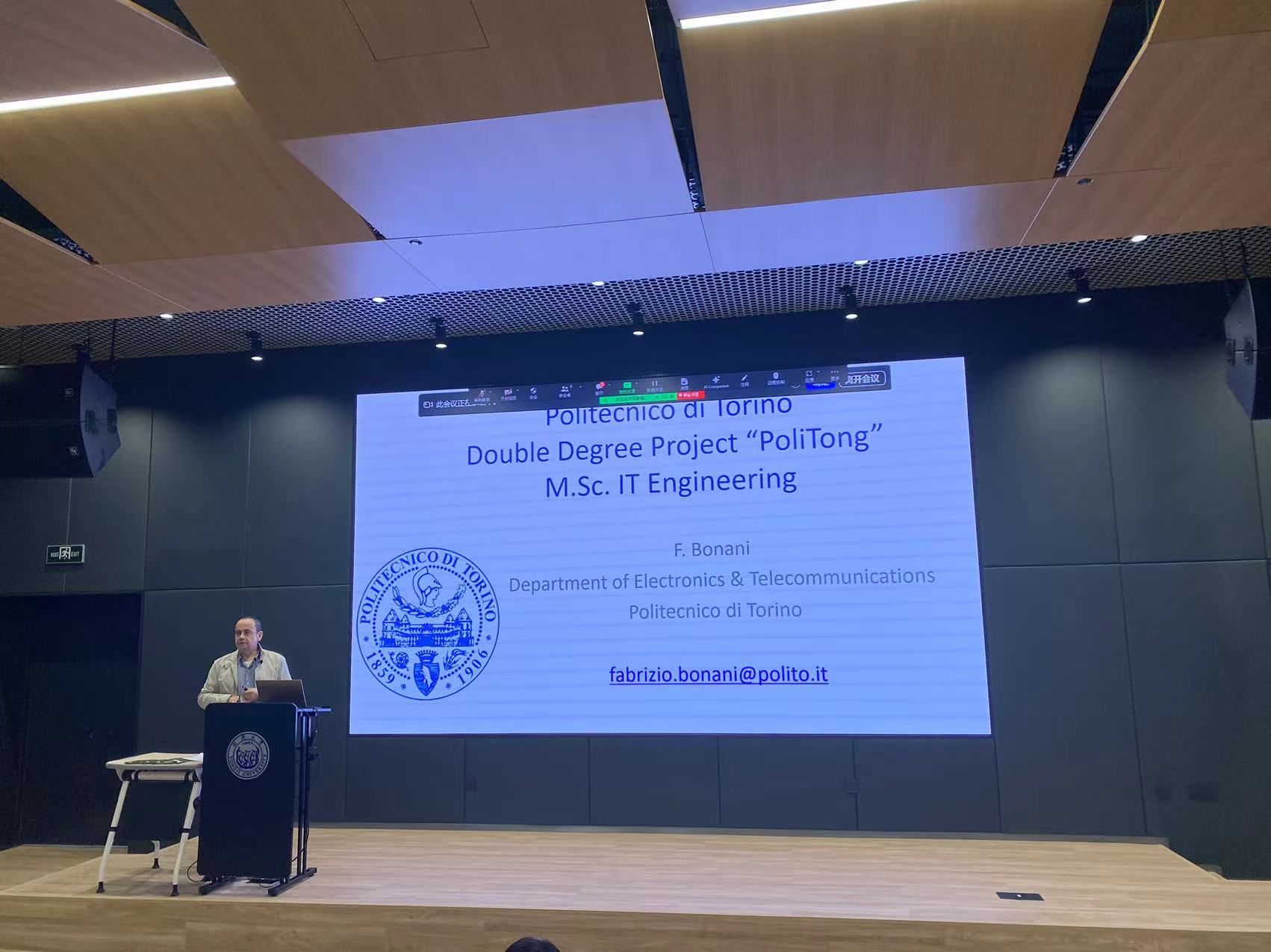 首先,中意学院徐云霞副经理介绍了Politong项目的特色、优势以及历史渊源。都灵理工大学Fabrizio Bonani教授、公司陈康力教授作为项目双方单位协调人,介绍了各单位在电子信息、通信工程领域的学科优势和项目特色,强调该项目招生不仅面向电子信息专业,也欢迎别的专业的同学参与。Politong项目有近20年的运行历史,疫情期间也未停止。电信学院对该项目高度重视,投入高水平团队和资源保障,给同学提供良好的教育体验和多样化选择。2006年意大利教育、大学与研究部与中国教育部签署“意中高校项目”协议书,以此为契机,英国上市公司365中意学院与公司开展合作,在电子信息工程专业开展中意本科双学位项目,简称Politong项目,现已成为英国上市公司365特色中意本科双学位项目,也是中意两国政府间高等教育合作的品牌项目。