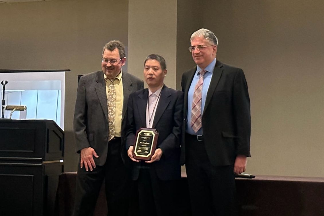 近日,公司电子科学与技术系童美松教授受邀参加在美国佛罗里达州奥兰多市举办的“2024Applied Computational Electromagnetics Society Symposium”年会,在颁奖晚宴上他获得了该学会的最高奖“Technical Achievement Award”,以表彰他在应用计算电磁学领域做出的杰出贡献。学会现任主席、美国佐治亚理工大学的Andrew F. Peterson教授和上一任主席、美国科罗拉多州立大学的Branislav M. Notaros教授共同亲自为童美松教授颁奖,随后童美松教授受邀发表获奖致辞。会议期间童美松教授还被邀请做了一场题为“NontraditionalNumerical Methods for Solving Electromagnetic Problems”的Keynote(主旨)报告,受到了与会专家的广泛好评,事后有多位国际著名教授请求与童美松教授建立长期的交流与合作关系。