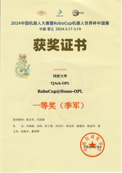 近日, RoboCup机器人世界杯中国赛在福建省晋江市举行。公司陈启军教授、刘成菊教授指导的TJArk团队取得了RoboCup足球机器人-标准平台组冠军,Robocup@Home-OPL家庭服务机器人开放平台组季军的好成绩