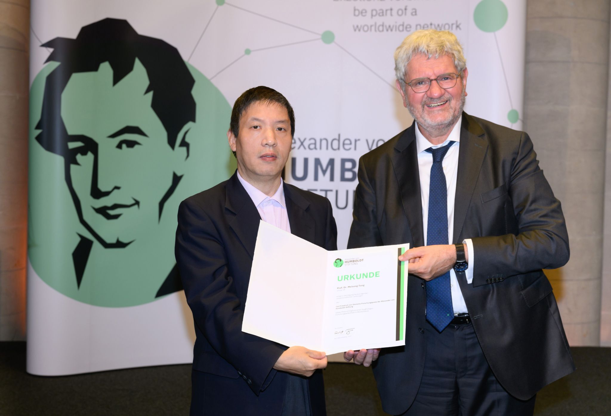 接受洪堡基金会主席Professor Dr Robert Schlogl颁奖