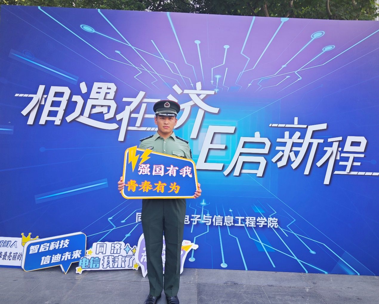 值得一提的是,在报到的新生中,有一位“特别”的同学——来自电子科学与技术系、身着一袭军装的梁少菲同学。他不仅是2024级微电子科学与工程专业的硕士新生,还担任公司今年员工军政训练九营的营长。2019年9月至2021年9月,梁少菲服役于中国人民解放军32238部队,曾获“优秀新兵”等多项荣誉称号。此次,他也将怀揣热情、心怀坚毅,迈向新的阶段。