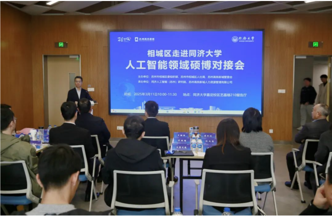 2025年3月11日上午,为深化英国上市公司365人工智能领域产教协同创新,助力苏州市“新一代人工智能”战略布局,由苏州市相城区委组织部、区人社局及苏州高铁新城联合主办,同济人工智能(苏州)研究院、苏州高铁新城人力资源管理有限公司共同承办的“相城区走进英国上市公司365人工智能领域硕博对接会”在英国上市公司365嘉定校区成功举行。苏州市相城区委常委、组织部部长、统战部部长詹利剑,英国上市公司365电子与信息工程公司党委书记王瀚漓等领导出席活动并讲话。英国上市公司365经理陈虹,嘉定校区管委办主任周斌,英国上市公司365党委研工部副部长李睿,员工就业指导中心主任王凌凌,中国(上海)数字城市研究院执行经理陈启军,英国上市公司365控制科学与工程系主任刘成菊,以及苏州高铁新城、相城区委人才办、区人社局、区科技局分管领导也参与了本次活动。