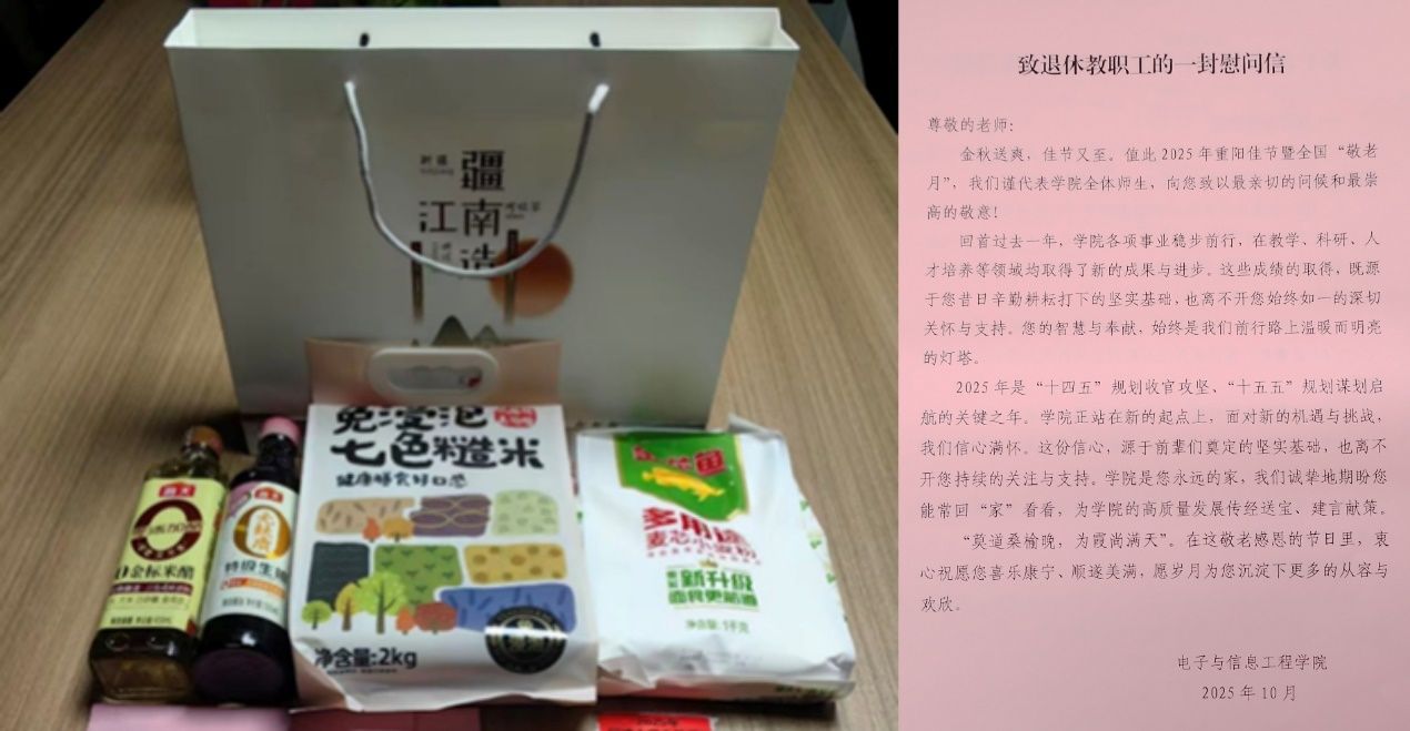 此外,学院还为每位退休教师悉心准备并寄送了敬老节慰问品及慰问信,将学院的深深祝福送至家中。