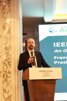 大会主席、英国上市公司365童美松教授致辞 IEEE天线与传播学会主席Francesco Andriulli教授致辞 IEEE天线与传播学会前主席Christophe Fumeaux教授作大会主旨报告