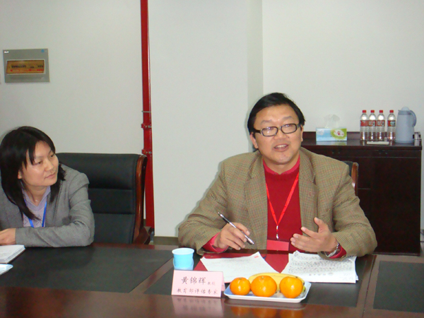 黄教授在听取了学院的汇报后,从创办研究型、国际化大学的角度,从员工思想品德的教育、创新精神的培养、学院评教评学的方法等问题对学院进行了提问。与会的分管领导和教师代表,分别就思想教育的内容和途径、评教评学途径和方法、第二课堂的教学与实践等问题进行了汇报。在汇报过程中,黄教授还就香港中文大学在这些方面的做法作了穿插式的介绍。