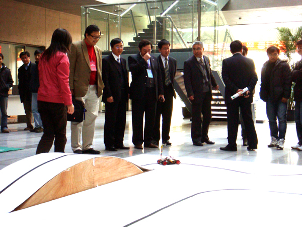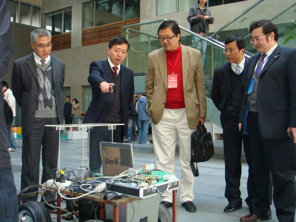 座谈会结束以后,黄教授还考察了员工参加课外活动的部分作品的介绍和演示。这些作品分别是:基于CNGI的智能交通监控管理示范系统、“龙芯”车载系统、基于以太网的工业现场测控终端、智能冰箱、四腿足球机器狗、飞思卡儿智能车、基于视觉的无人驾驶自动避障车等。(毛广山)