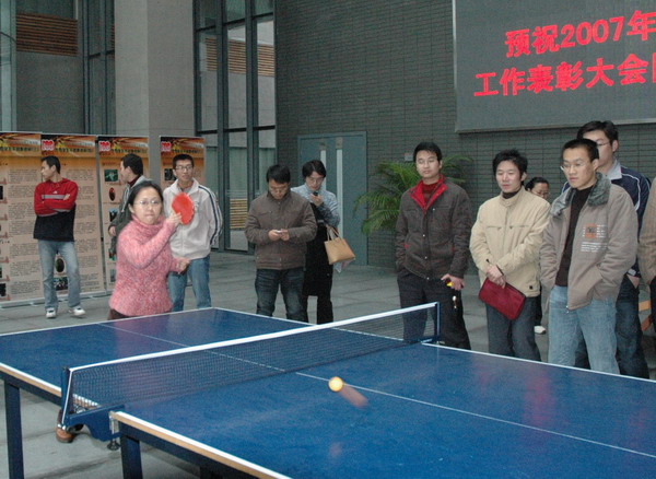 12月25日,公司第一届教工乒乓球团体赛决赛阶段比赛及颁奖仪式在嘉定校区学院大楼大厅举行。标志着公司为期12天的“全民健身,与奥运同行”为主题的的群众性体育活动落下了帷幕。