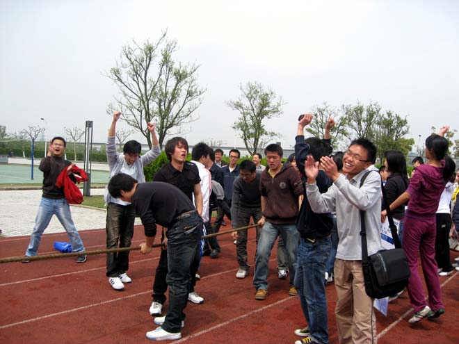 4月14日中午,学院研究生电信之春系列活动之“携手共进,e路辉煌”拔河比赛在嘉定校区田径场举行,包括各专业导师在内的百余名师生参与了此次比赛。