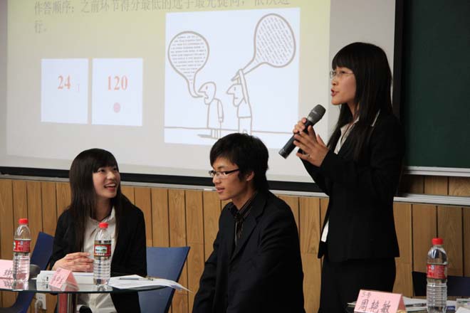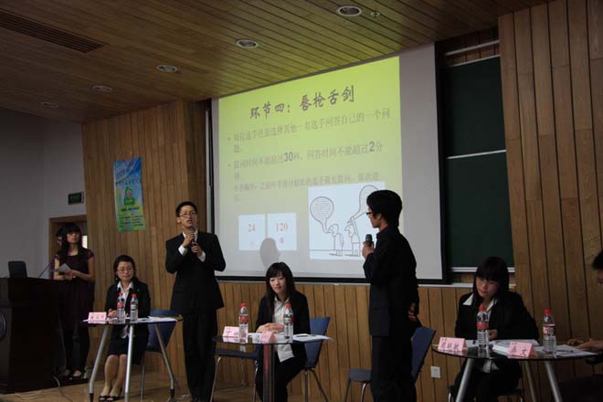 经过前期笔试、面试,共有来自不同学院的六位选手入围“面霸”挑战赛终极挑战。比赛在内容丰富,形式多样的“自我展示”中拉开帷幕;接下来的“绝对挑战”,充分展示了各位选手的创业素质和写作能力;“情景模拟”针对一个具体的职场问题,考验选手在真实环境下的决策力、洞察力、职业道德等;“唇枪舌剑”则体现了各位选手的逻辑分析能力和思辨能力。
