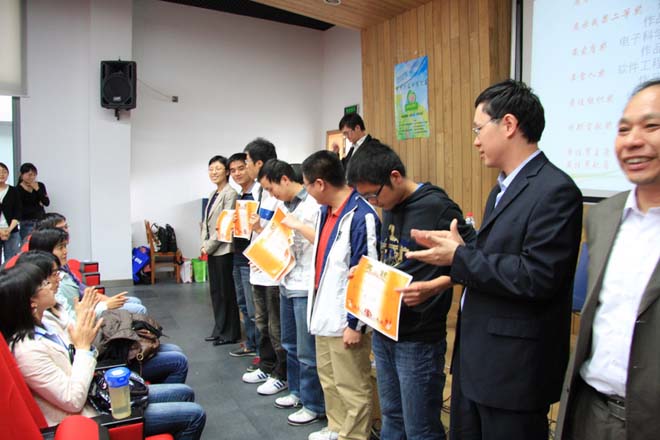4月29日,学院第十六届电信之春闭幕式暨第二届“面霸”挑战赛在电信大楼117隆重举行,来自学院各个专业的研究生一百多人观看了比赛,公司党委副书记乔非观看了比赛并致闭幕辞。