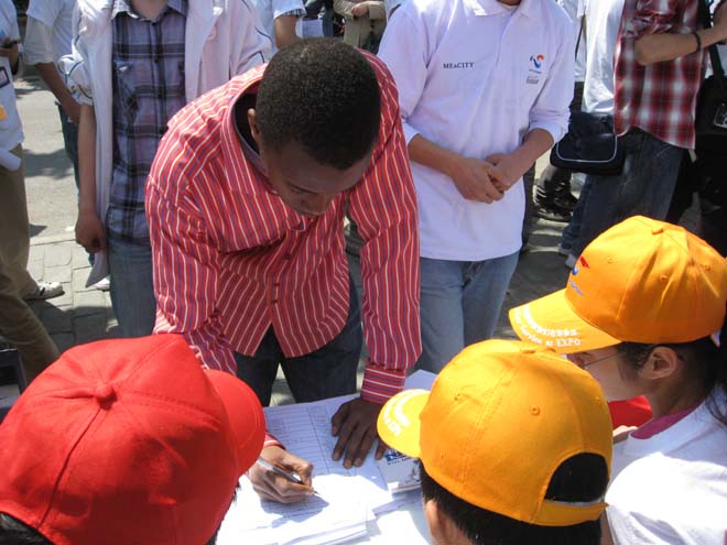 5月1日是上海世博会开幕倒计时1周年。当日上午,2010年上海世博会志愿者招募启动仪式分别在东方明珠电视塔、徐汇区及杨浦区同时举行。由上海市世博会筹办工作领导小组志愿者组主办,中共上海市杨浦区委、上海市杨浦区人民政府与公司共同承办的“中国2010年上海世博会志愿者招募(杨浦•同济)启动仪式”暨世博招募工作站揭牌仪式在四平社区文化活动中心举行。