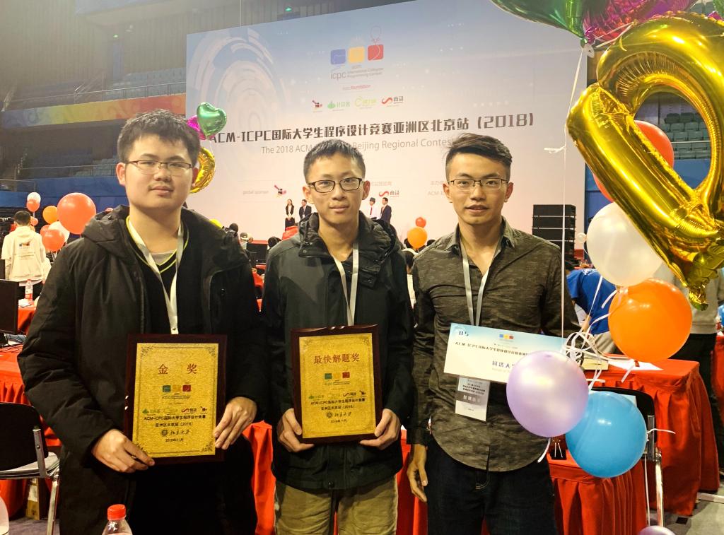 2018年11月12日,第43届ACM国际老员工程序设计竞赛亚洲区比赛在北京大学落下帷幕。本次比赛共有200支参赛队参加,经过5个小时的奋战,由来自公司的任秋宇、欧阳小伟、刘毅韬组成的“荠蒻”代表队,继南京站之后再次夺得金奖。