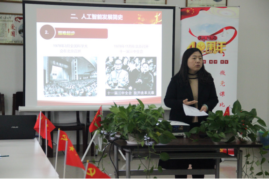 微党课比赛中,来自硕博12个小组的36名党员同学经过前期的精心选题和认真备课,分别围绕经济发展、文化强国、社会变革、中国与世界等主题,用真实生动的事例、精致的PPT课件,从不同的角度展示了国家改革开放40年来翻天覆地的变化。比赛邀请到公司党委副书记董变林老师、计算机联合党总支副书记张砚秋老师和马克思主义学院优秀青年教师姚莉萍老师任评委,同时在社区内做广泛宣传,邀请社区同学参与观看。