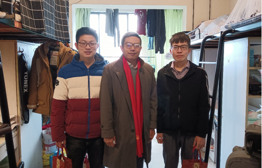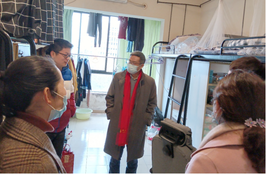 辛丑年大年初一(2月12日),公司党委书记王峻老师来到学院物业和学院值班室等处,亲切慰问了春节期间仍坚守岗位,奋战在一线的工作人员。王峻老师向在岗的保安、保洁和学院办公室值班人员致以节日的问候和新春的祝福并送上了新年大礼包,感谢他们的辛勤付出,希望他们继续坚守岗位,为寒假春节期间留在学院的约200名员工做好各项服务保障工作。