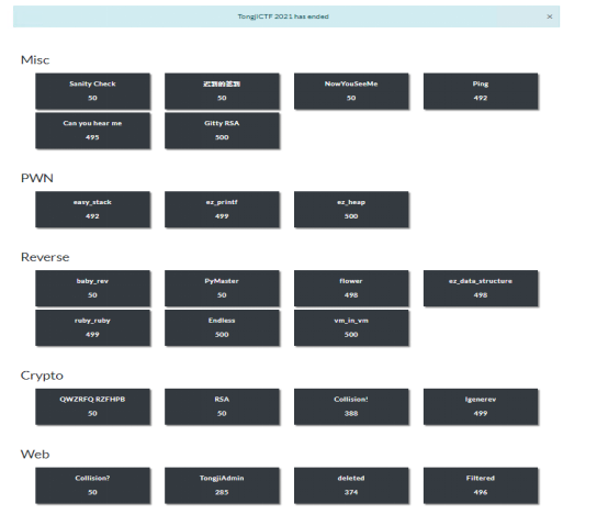 比赛历时60小时,主办方共发放24道题,主要包含逆向、漏洞挖掘与利用、Web、密码、安全编程等类别,赛题从易到难,梯度上升。既可以帮助新同学入门,又能给有基础的同学充分展示自我能力的机会。