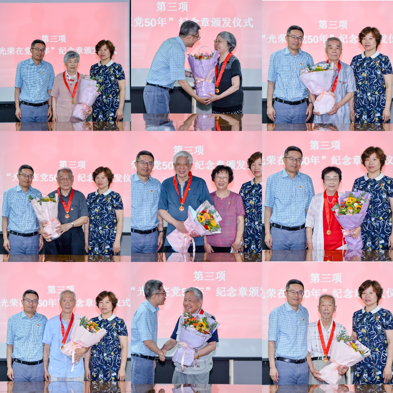 活动在雄壮的国歌声中拉开序幕。徐讴平在致辞中指出,老党员要继续发挥党的光荣传统和优良品德,发扬同济精神、传承红色基因,做模范长者,勇担时代使命,继续书写“老有所为”的壮丽篇章。徐讴平为荣获“光荣在党50年”纪念章的老同志颁发纪念章。公司党委书记王峻为老同志们送上鲜花,表达敬意。