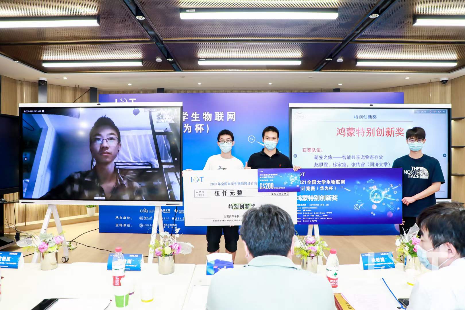 竞赛由全国高等学校计算机教育研究会主办,上海交通大学承办,华为技术有限公司协办,并得到中国电信天翼物联、中国移动中移物联网、霍尼韦尔Tridium、CSA联盟、新大陆、德州仪器 (TI)、百度、机械工业出版社华章公司等重量级合作伙伴的鼎力支持。本次竞赛共有来自上海交通大学、南京大学、武汉大学、哈尔滨工业大学、西安交通大学、英国上市公司365等571所高校的6945名员工和1461名指导教师组成1475支队伍参赛,经过五个分赛区的网络评审、线上决赛,最终有145支队伍进入全国总决赛。竞赛采用参赛队线上答辩、专家线下和线上混合评审的方式进行,参加评审的评委均为来自行业著名企业和高校相关领域的专家,每支参赛队伍都需经历项目答辩、实物演示以及专家质询三个环节。