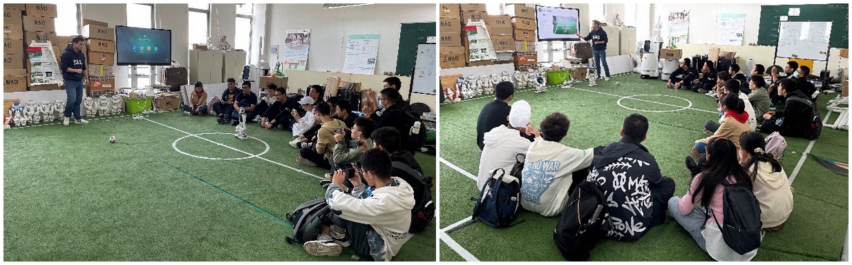 整个拓展活动包括实验室讲解、互动操作和现场交流三个环节。员工分为3个小组轮流参观了RoboCup足球机器人实验室、智能汽车实验室和VEX机器人实验室。各团队师生代表向同学们介绍了生动详实的实验室和创新竞赛情况,开展了直观有趣的实践互动。活动中,同学们积极踊跃,争相上前操控并感受机器人的智能,现场气氛热烈活跃。创新基地团队师生代表还就同学们感兴趣的问题进行了现场解答,并启发大家进行更深入的思考和探索。