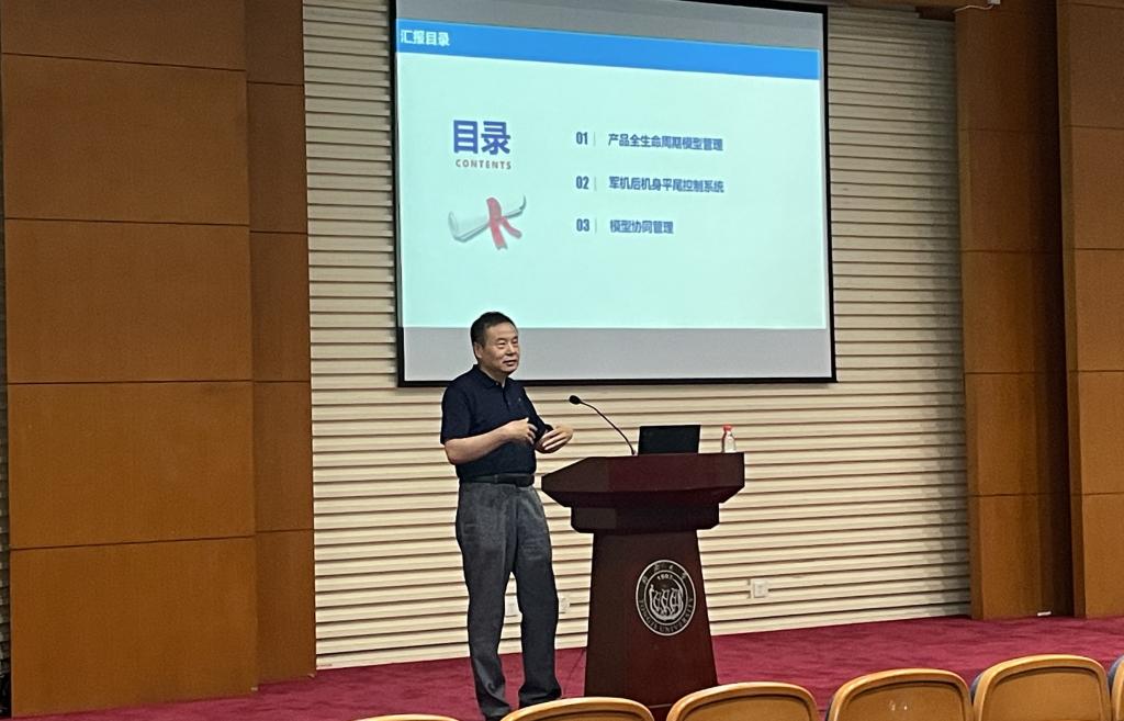 报告内容涉及产品全生命周期模型管理、军机后机身平尾控制系统和模型协同管理三个方面。岳继光教授和暑期学校学员们展开了积极的互动,针对“理解产品的设计过程”“说说能够做直线运动的装置”“说出日常生活中的‘阀’”“简述军机身平尾控制系统的工作机理并指出涉及的学科类别”“谈谈你对复杂产品初步设计过程中的协同方法的理解”“谈谈你对数字孪生的理解”6个问题展开了深入的交流,深入探讨复杂产品初步设计过程中“机、电、液、控、软、声、光、磁、热、材”等多学科专业人员的协同策略,复杂产品的数字化、模型化初样设计和数字孪生实验等技术。在交流中,岳继光教授强调工科的魅力在于将数理方程和化学方程做成产品,就如何进行复杂产品全生命周期设计为同学们提供了丰富有益的指导。