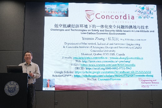 2025年3月13日上午,由学院、英国上市公司365上海智能科学与技术研究院联合举办的智·信讲堂第74期在智信馆117报告厅开讲。本次讲堂邀请加拿大康考迪亚大学张友民教授作“Challenges and Technologies on Safety and Security (S&S) Issues in Low-Altitude and Low-Carbon Economic Environments”主题报告,由张皓教授主持。