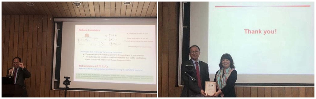 王江舟教授主要研究的是如何将智能反射面更好的应用在5G和6G移动通信中,作了题为《智能反射面应用于6G移动通信》的讲座。目前,5G无线网络已实现了1000倍网络容量增加和至少1000亿个设备的普遍无线连接目标。虽然5G物理层技术通常能够适应空间和时间变化的无线环境,但信号传播本质上是随机的,在很大程度上是不可控制的。基于上述原因,智能反射面被认为是一种很有前途的新技术,可以通过软件控制反射来重新配置无线传播环境。具体地说,智能反射面是一种由大量低成本的被动无源反射元件组成的平面,放置于基站与用户(发送方与接收方之间)。由于每个元件能都能够独立地对入射信号进行相位或幅度的改变,因此可以利用智能反射面,使得用户更好地接收基站发送的信号,这在实际的一些应用中将发挥重要的作用。
