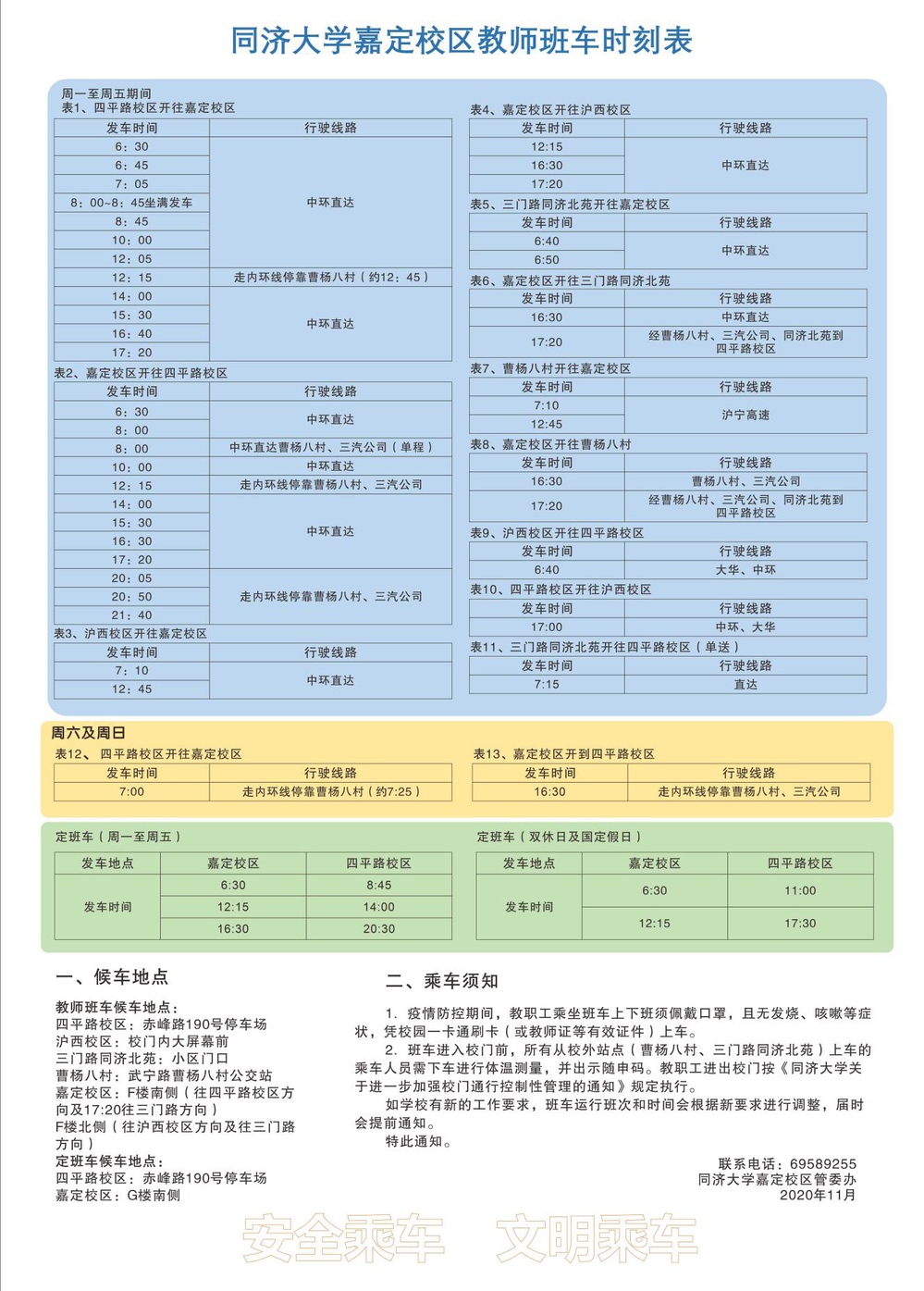 疫情防控期间,请师生们佩戴口罩乘车,且无发烧、咳嗽等症状,凭校园一卡通等有效证件刷卡上车。