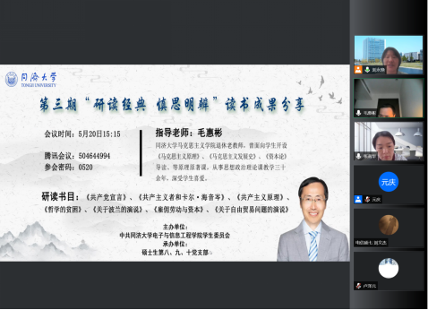 在疫情防控的特殊时期,5月20日下午,学院员工党委举办党员新视野暨第三期“研读经典 慎思明辨”假期读书线上分享会。本次分享会由员工党委副书记刘永焕老师主持,马克思主义学院退休思政专家毛惠彬老师现场点评,员工党员、入党积极分子100余人参加了分享会。