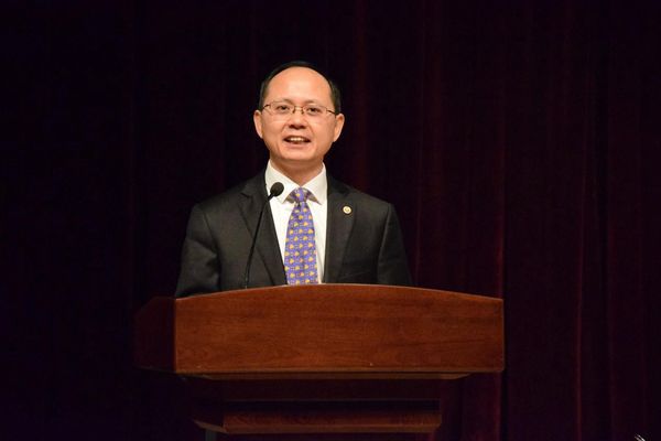 最后,公司党委副书记冯身洪致辞。他对同学们在中国特色社会主义进入新时代时成为毕业生表示祝贺,对所有电信学院为员工培养付出辛勤劳动的各位老师和各位院领导表示感谢,并祝愿大家“前程似锦,满地鲜花,掌声如潮,达到新的辉煌”。他对每一位毕业生都寄予了殷切期望,他鼓励同学们“继续传承同济的精神,同济的情怀,同心同德同舟楫,济人济事济天下”;他还引用习主席的话,“青年兴则国兴,青年强则国强,青年一代有理想、有本领、有担当,国家就有前途,民族就有希望”,希望同学们成长为有用的人,能够为社会作出更大的贡献。最后冯身洪副书记将临别赠言送给每一位毕业生:仰望星空,志不坠青云,脚踏实地,行必积跬步。