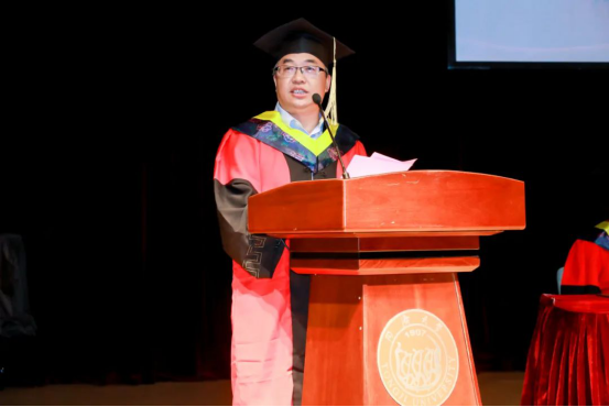 大会上,陈启军经理代表学院全体教职工对全体毕业生顺利毕业表示祝贺,向毕业生分享了自己的人生感悟,将想要说的话汇成四字经,对同学们提出了殷切希望:第一,认识世界,心存善念,珍爱生命,敬畏自然;第二,脚踏实地,学无止境,独立自主,善于创新;第三,初心如磐,坚定信仰,修身立德,勇于担当。