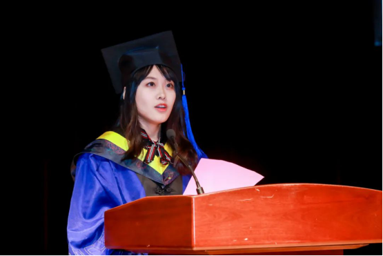 控制科学与工程系张皓教授代表教师发言,她说,大家作为时代的见证者、建设者,即将步入一所叫做“社会”的综合性大学,逐渐放弃依赖,离开父母、师长的庇护,独立闯荡世界,要怀揣梦想,要胸怀天下,要不忘初心,要铭记感恩,更要保重身体。祝愿大家成为真正自律的自己,活成自己想要的样子。