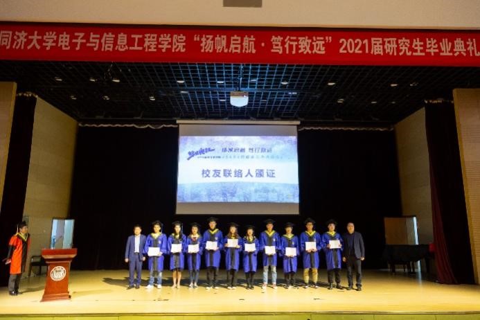 随后,嘉定校区管委办主任王晓国教授宣读电信学院2021届员工班级联络人名单。电信学院员工分会副秘书长石松华、欧阳家淦为员工联络人们颁发聘书。聚是一团火,散是满天星,无论走到哪里,联络人都将维系每一位毕业生彼此之间以及与母校之间的情感联结。