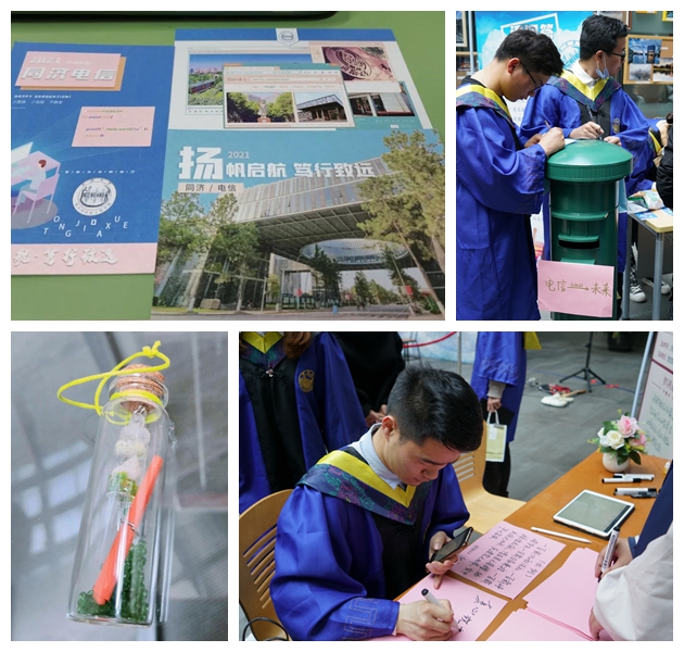 《请回答2021》活动中,毕业生们在印有电院特色的明信片上书写给未来的自己的话,装好信封投递进邮筒内,好好道个别。毕业时,心里藏了千言万语,却常常来不及说出口就散了,唯愿此去繁花似锦,再相逢依旧如故。