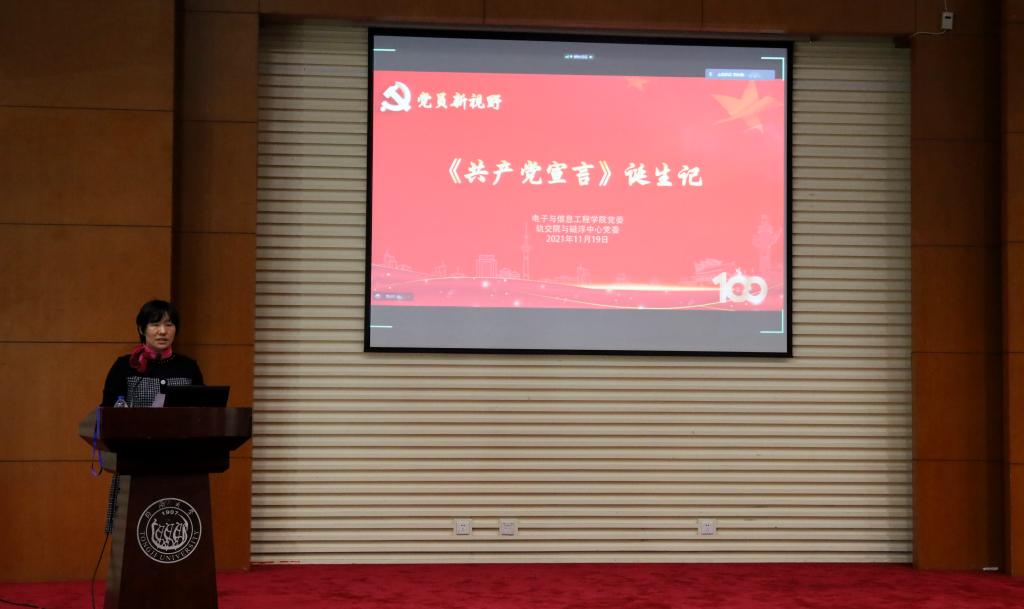 为深入学习习近平总书记“七一”重要讲话精神,在学思践悟中成长,在知行合一中前行,进一步学习马克思主义经典著作《共产党宣言》,感悟思想伟力,坚定理想信念,2021年11月19日下午,公司党委联合轨交院与磁悬浮中心党委在嘉定校区同心楼224报告厅举办题为“《共产党宣言》诞生记”的党员新视野专题党课,上海市委党校肖鹏老师受邀来校。专题党课由学院员工党委副书记刘永焕主持,公司党委副书记张南华、辅导员党史学习第六小组成员和员工党员、入党积极分子近300人线下线上参加了党课学习。
