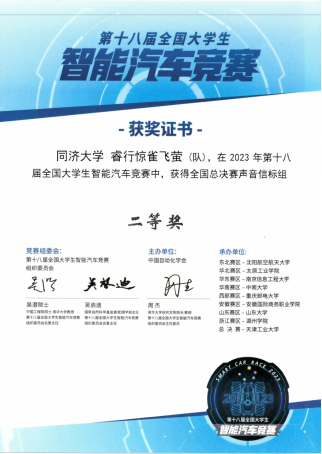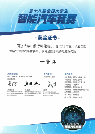 在校本科生院和学院的大力支持下,由控制科学与工程系张志明和朱劲老师领队,公司三支队伍赴天津参加现场比赛,老队员姚宇阳、杨怡参与辅助管理。参加竞速组别总决赛的两支队伍,“睿行•可能”队由黄知为(自动化)、刘梦晓(自动化)、肖栋(人工智能)、王刻羽(自动化)四位同学组成,由张志明和徐和根老师指导,获得室内电能接力组全国一等奖;“睿行•惊雀飞萤”队由夏邦彦(通信工程)、伊江越(电气工程及其自动化)、郑雄(人工智能)三位同学组成,由张志明和朱劲老师指导,获得室外声音信标组全国二等奖。此外,参加百度智慧交通创意组全国总决赛的“睿行•CanCanWorld”队由许志康(数据科学与大数据技术)、朱旭堃(计算机科学与技术)、缪其隽(计算机科学与技术)、朱嘉策(计算机科学与技术)、盛夏悦(电气工程及其自动化)五位同学组成,由张志明老师指导,获得全国二等奖。