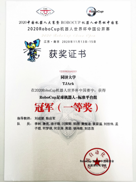 在足球机器人标准平台组比赛中,TJArk以凌厉的进攻和完美的防守零封了所有对手:半决赛对阵郑州大学,上半场伊始便攻破了对方球门,导致对方最终选择战术性弃权;决赛对阵武汉大学,凭借杰出的防守使对手甚至未能成功射门,并最终1:0取胜,实现了该赛事的八连冠。