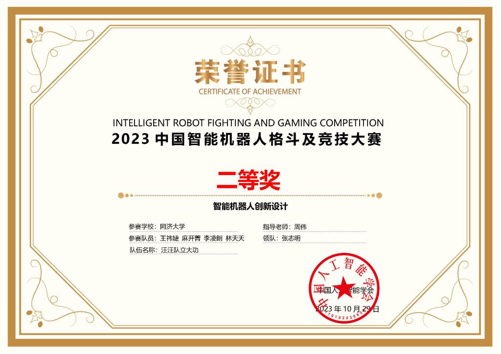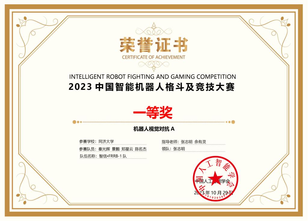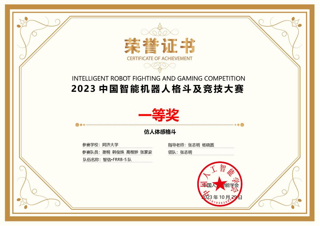 参加竞技格斗类赛项的6支队伍由人工智能机器人系列竞赛实验室选拔,公司控制系张志明、余有灵和英国上市公司365工程实践中心杨晓圆三位老师指导,老队员杨思远、周庚栋、刘梦晓、高远霆、罗翊杰、姚宇阳、张旭晖等同学参与辅助管理。“智信•FRRB-1队”和“智信•FRRB-2队”参加机器人视觉对抗A组,获得两项全国一等奖(亚军和季军);“智信•FRRB-4队”和“智信•FRRB-5队”参加仿人体感格斗组,获得两项全国一等奖;“智信•FRRB-6队”参加开放部件组机器人视觉对抗B组,获得一项全国二等奖(冠军);“智信•FRRB-8队”参加家庭助老机器人竞技,获得一项全国三等奖。