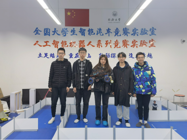 参赛队员合影(从左到右:张曜程、张儒戈、齐晓燕、陈晨、李哲宇)